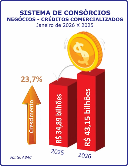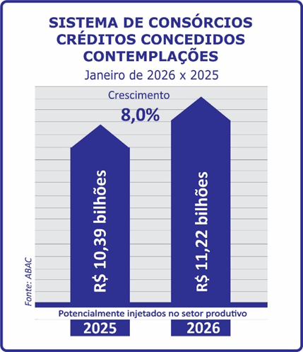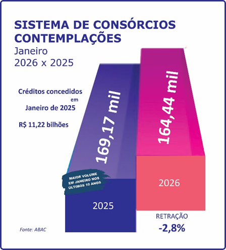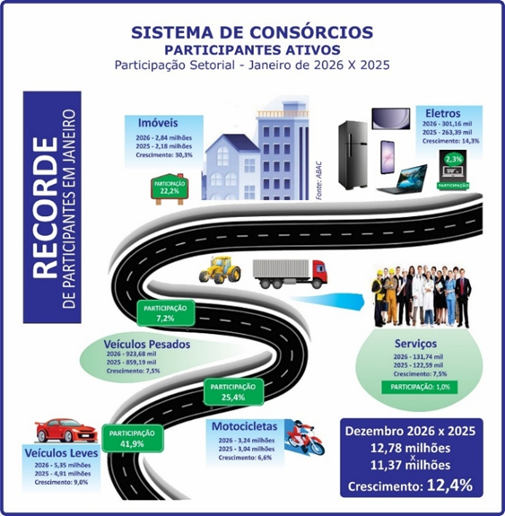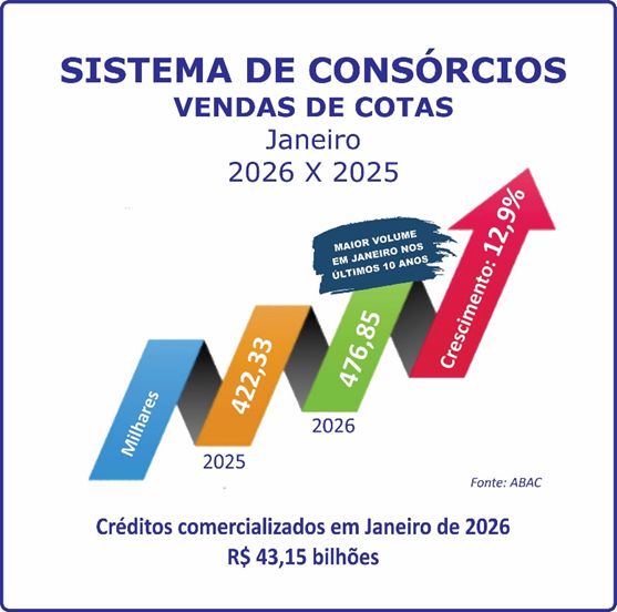 No primeiro mês deste ano, o Sistema de Consórcios apresentou resultados positivos quando comparados com janeiro de 2025. A exemplo de meses anteriores, a modalidade seguiu quebrando alguns recordes nos indicadores nacionais e setoriais. Ao comprovar que a escolha do brasileiro continua ratificando sua crescente confiança, o consórcio provou também sua importância nos segmentos produtivos.